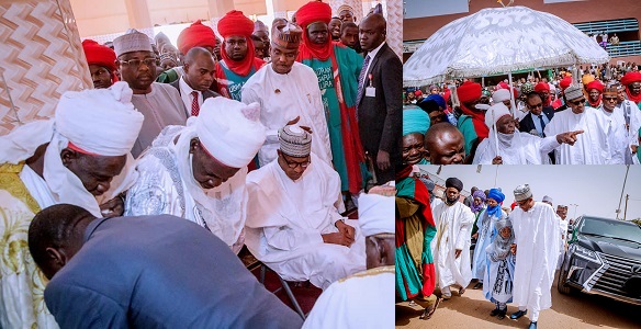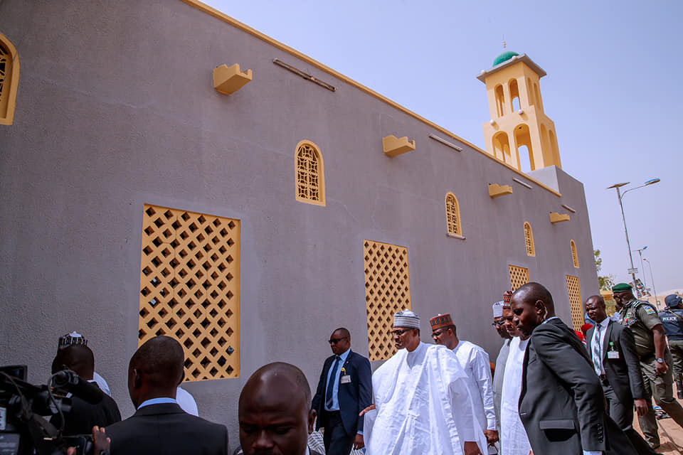 Buhari arrived the mosque at exactly 1:45 p.m today, joining thousands of faithful to perform the two raka’at prayer.
