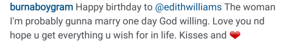 Burna Boy shared a photo of a young curvy lady – Edith Williams as he celebrated her birthday and wished her many happy returns.