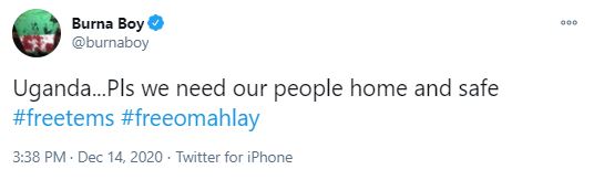Two-time Grammy award nominee, Burna Boy and other Nigerian celebrities have demanded for the immediate release of Omah Lay and Tems after they were arrested in Uganda.