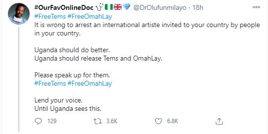 Their arrest has stirred an outrage on social media as Netizens have spoken up against the actions of the Ugadan police. The hashtags #FreeTems and #FreeOmahLay has also been trending on Twitter since the arrest of the fast-rising Nigerian artistes.