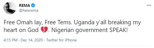 Some of them have also appealed to the Nigerian Government to intervene and facilitate the release of Tems and Omah Lay.