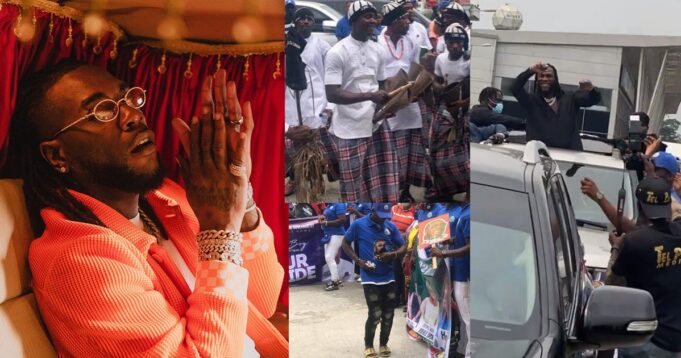 In videos shared online Burna Boy’s mum, Bose Ogulu was spotted with him as the crew entertained them with cultural performances.
