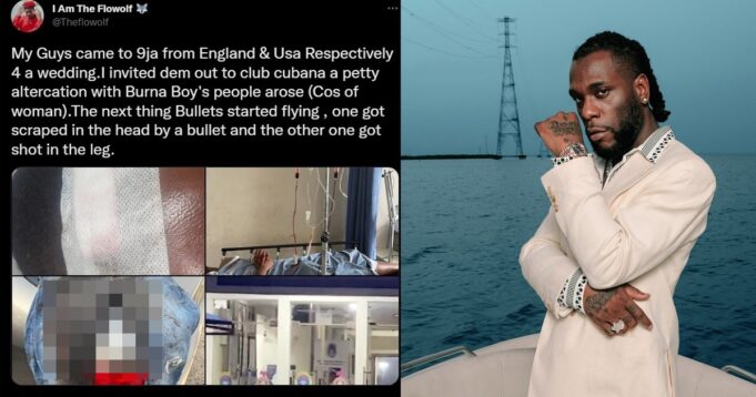 ”My Guys came to 9ja from England & Usa Respectively 4 a wedding.I invited dem out to club cubana a petty altercation with Burna Boy’s people arose (Cos of woman).The next thing Bullets started flying , one got scraped in the head by a bullet and the other one got shot in the leg.