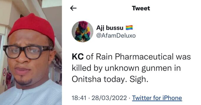 A businessman has died from gunshot wounds inflicted on him by gunmen in Anambra state just hours after he was seen partying with friends.
