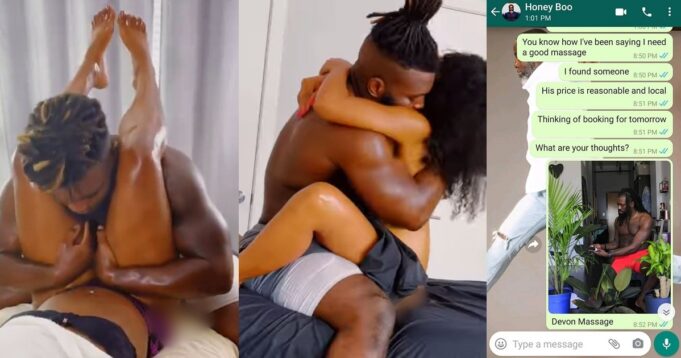The woman identified as Vivian Elebiyo-Okojie, in a bid to pull her husband, Gibson Okojie’s legs sent him a topless photo of the ripped masseuse and her husband’s response has left a number of netizens in stitches.