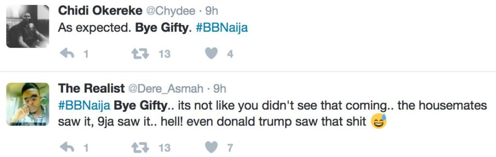 They even got “Bye Gifty” to trend on Twitter. See below: