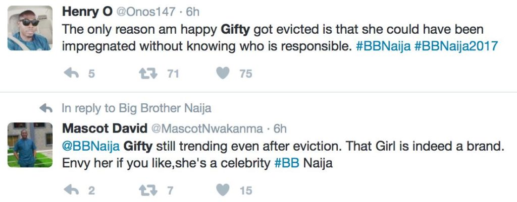 Big Brother Naija Housemate, Gifty was evicted from the show Sunday night – Nigerians on social media have been in a joyful mode since the actress, who said she loves power and fame and wants it so badly, walked out from the Big Brother Naija house.