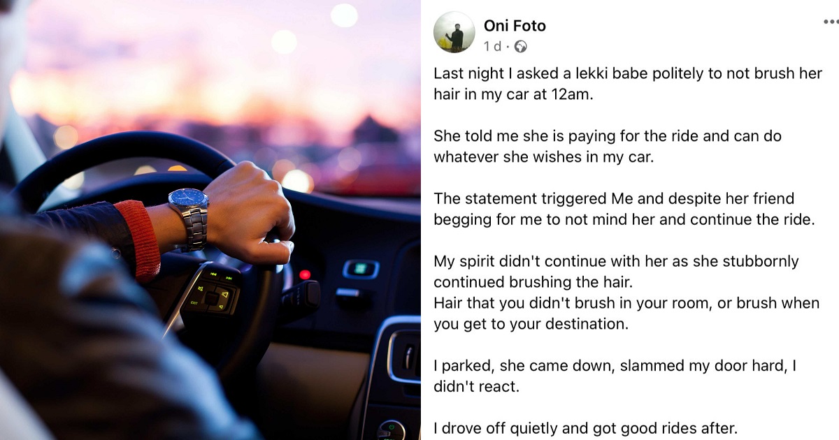 A cabman has narrated how he handled a “Lekki babe” who refused to stop brushing her hair in his car despite telling her not to.