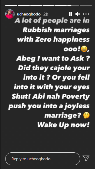 Uche Ogobodo was heavily criticized for the post as netizens pointed out that people didn’t set out to be miserable in their marriages.