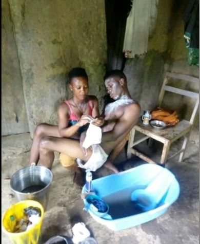 Reports are that this happened in Aba, Abia state, with the caption; “ladies should stop calling their boyfriends baby if they cannot take care of him in this manner.”