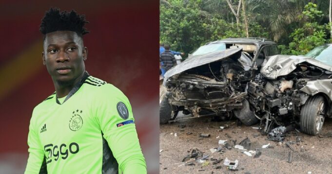 Cameroon goalkeeper, Andre Onana, miraculously walked away unharmed after being involved in a ghastly accident on his way to Douala from the country’s capital, Yaounde.