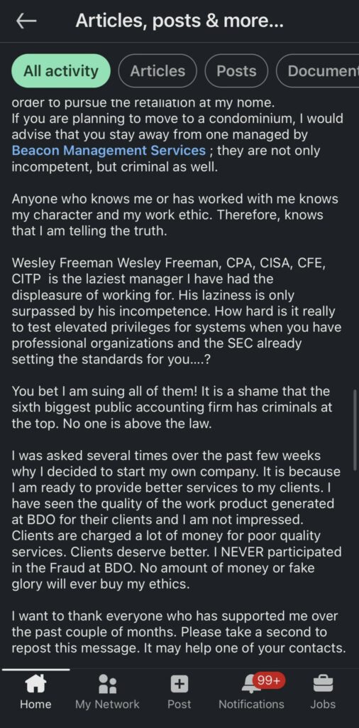 She also took to LinkedIn to reveal that she started her own company because of the mistreatment she suffered in her former job.