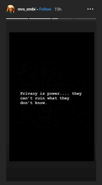In another post, Zahra further disclosed that ‘privacy is power, they can’t ruin what they don’t know.‘