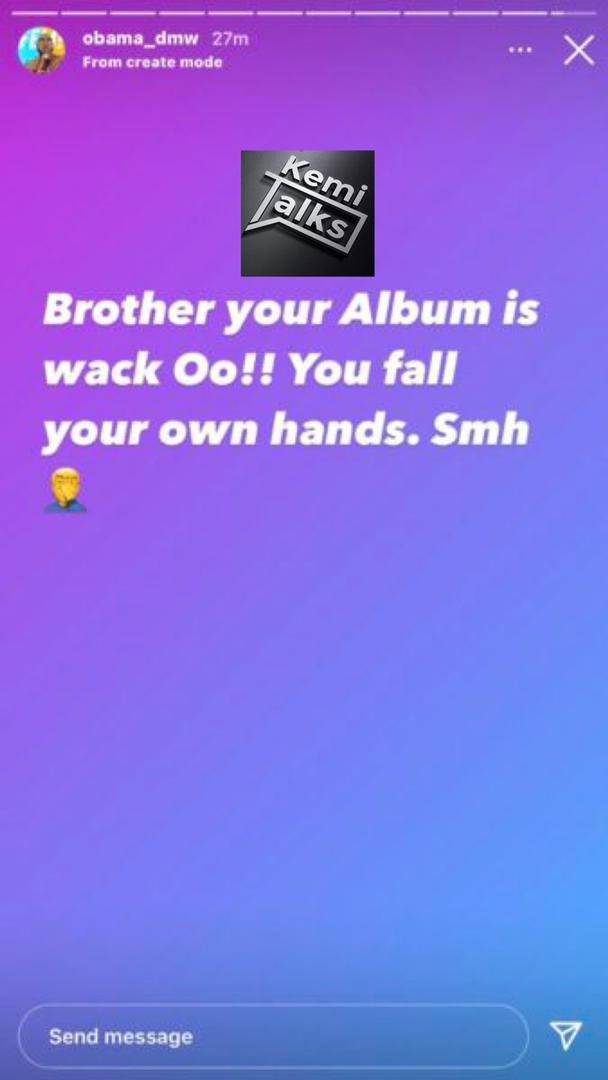 However, while the album received tons of positive review from people, Obama DMW took to his Insta-stories at the time to publicly criticize the album, calling it ‘wack’.