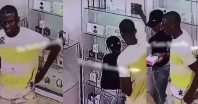 A CCTV footage showing the moment a young man stole an iPhone 12 pro max at a shop in computer village, Ikeja Lagos state, has been shared online.