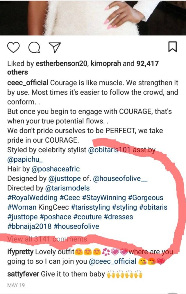 He also accused Cee-C of also cropping out his watermark on the photos before posting on her Instagram Page.