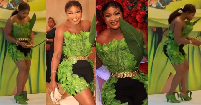 The entrepreneur graced the occasion in a unique leafy green and black bustier outfit, with a ‘banana leaf’ inspired shoe to match.