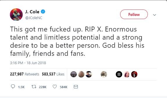 American celebrities, Kanye West, Jidenna, The Game, J.Cole, Tyga and many others have taken to their respective social media accounts to mourn the 20 year old rapper who was shot dead in Miami yesterday.