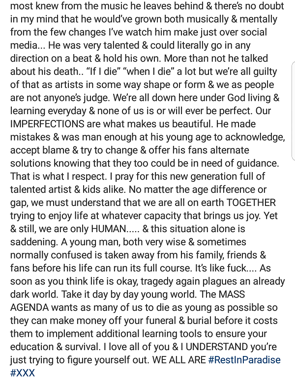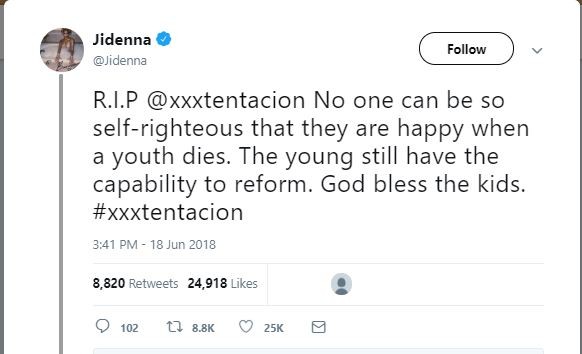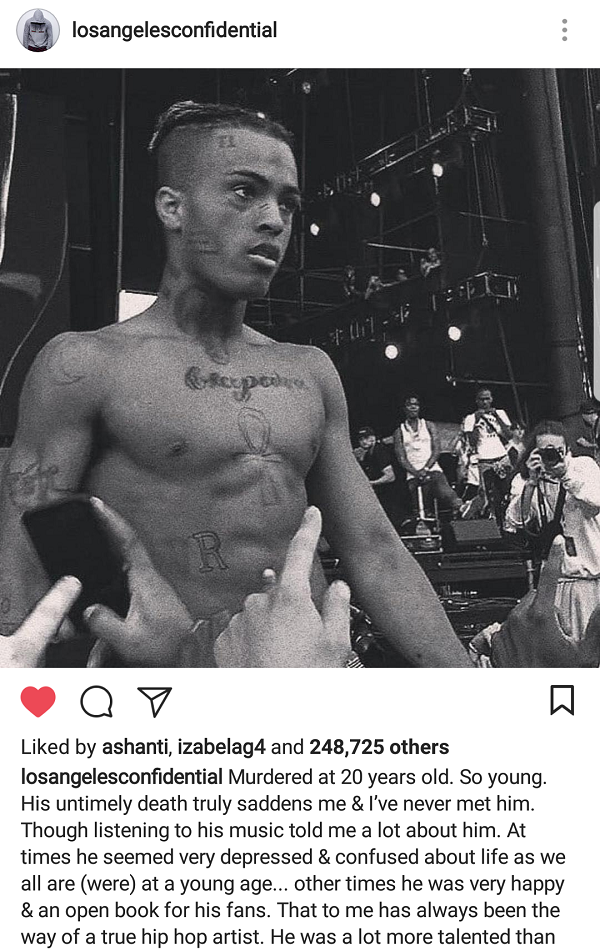 Yesterday, the American music entertainment industry and the world mourned the death of young rapper, XXXTentacion.