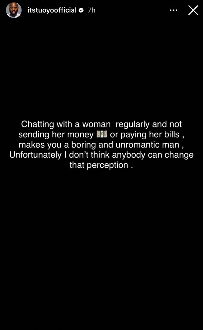 Big Brother Naija star, Tuoyo Ideh, has criticized men who regularly chat with women but never provide financial support.