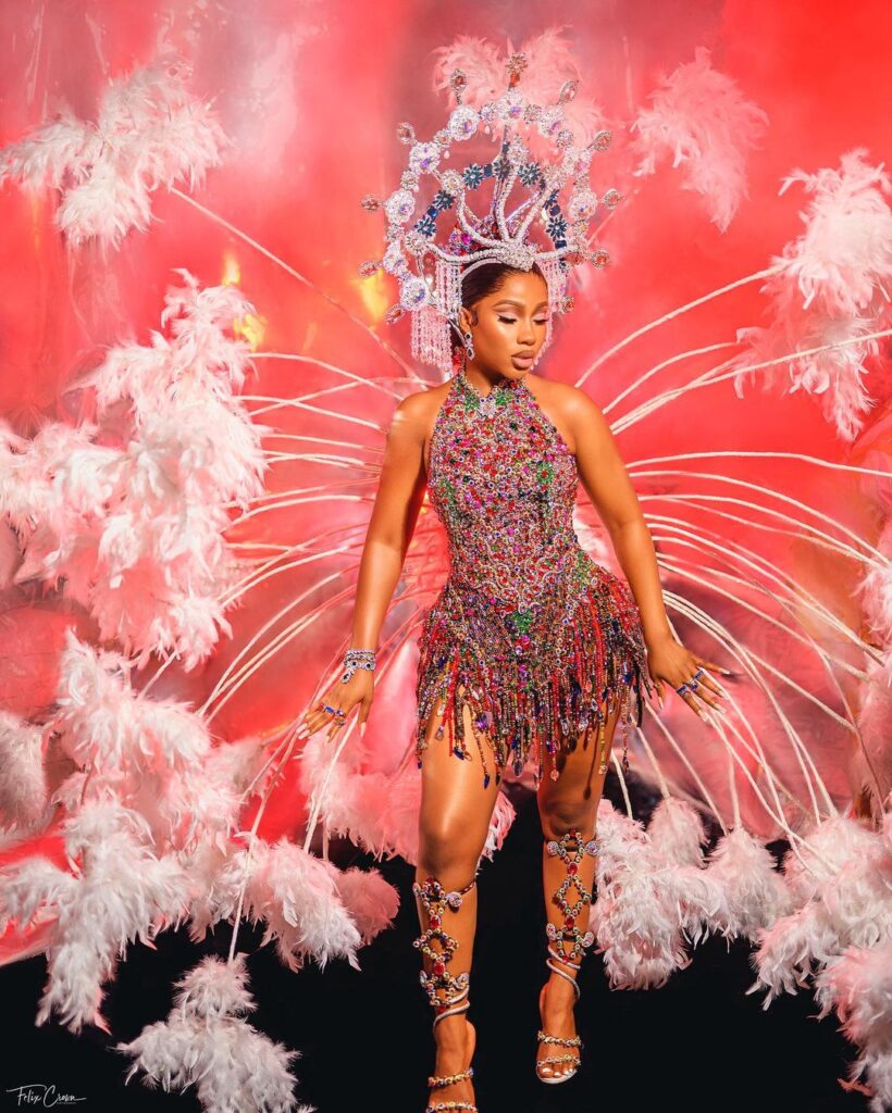 Mercy Eke, who was unveiled as one of the housemates, made a powerful fashion statement with her carnival-themed outfit during the premiere of the new season.