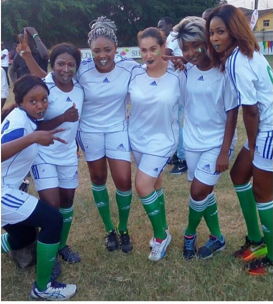 Lovely actress, Caroline Danjuma with other celebrities Juliet Ibrahim inclusive, flew to Ghana for Juliet Ibrahim’s foundation celebrity football match.