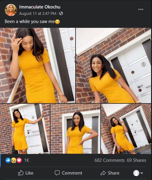 Immaculate had taken to her Facebook page to share photos of herself with her friends as she said it’d been a while she’d shared photos on the platform. See her post below,