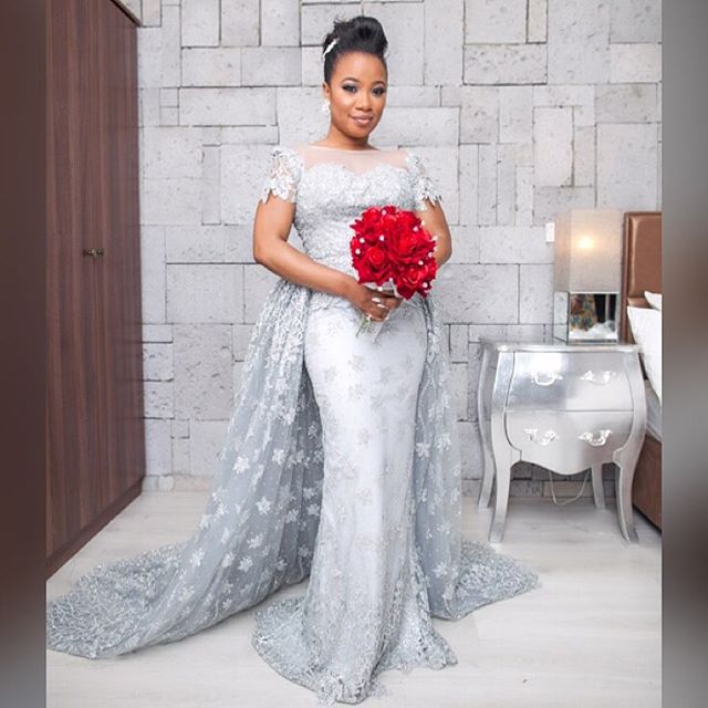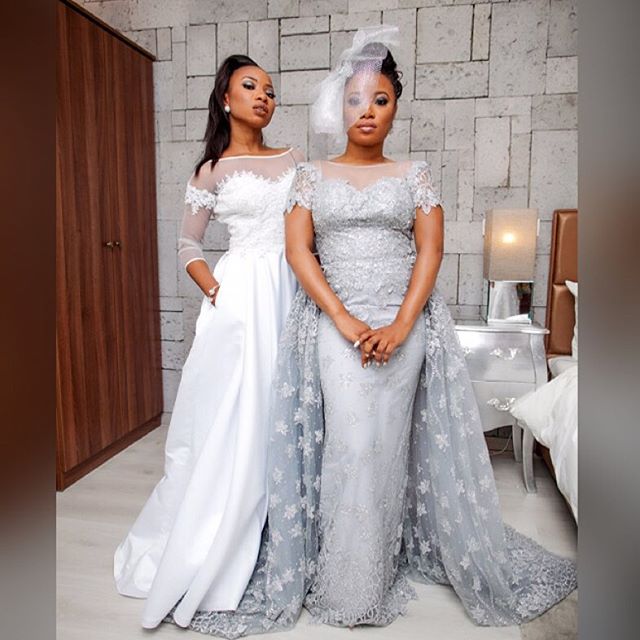 Her sister, Lola, rocked a beautiful grey wedding dress, designed by April by Kunbi while she, Mo’Cheddah slayed in a white fit gown.