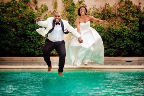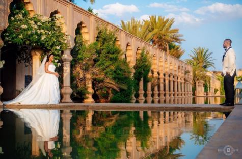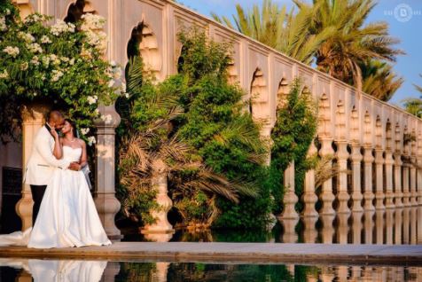 their wedding was held in Morocco unlike any other wedding, they made theirs unique by jumping into the pool together.