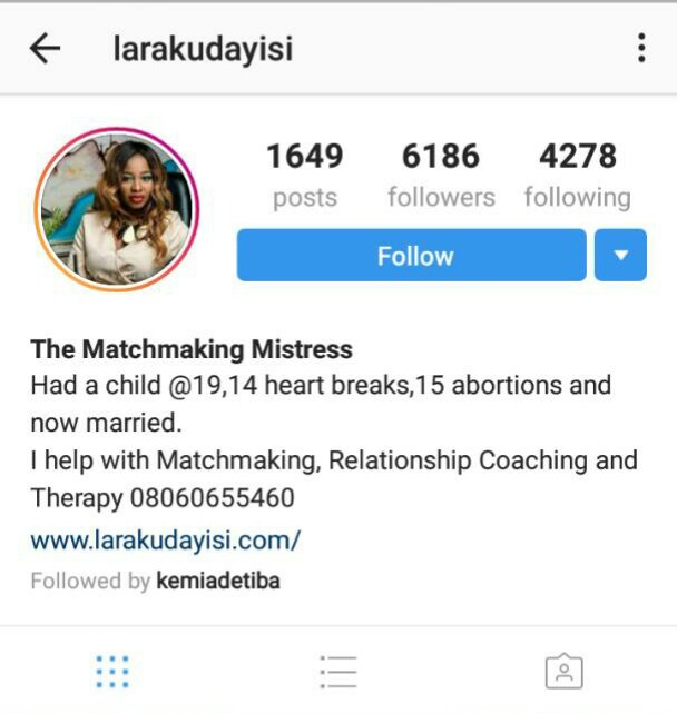 Nigerian top Matchmaker, Lara Kudayisi shocked many over the weekend when she stepped on stage at a self-development, conference in Lagos and told the audience that during her teenage years she had a child, got 14 heartbreaks from different men and worst still,she had 15 whopping abortions!