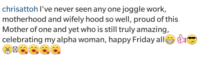 Dapper Ghanaian actor, Chris Attoh, who plays a major role in the MTV series, Shuga, earlier in the day rained praises on his very gorgeous wife, delectable actress, Damilola Adegbite.