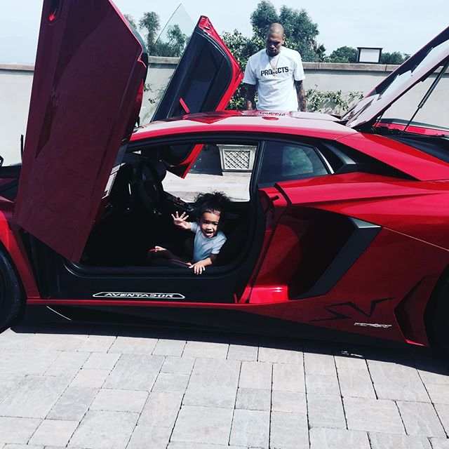 Pop Singer, Chris Brown shared this adorable photo of himself and his daughter, Royalty as she takes a ride in his Red Lamborghini. She’s a cutie!