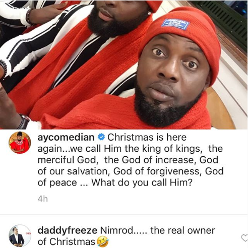 The OAP said this while reacting to a celebratory post shared by AY. In AY’s photo, he and his brothers had on matching outfits and AY shared it with a caption that spoke about Christmas and the coming of Christ.
