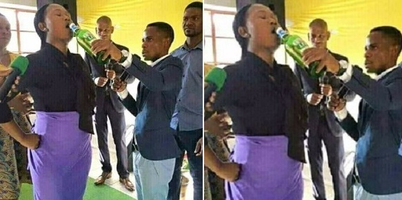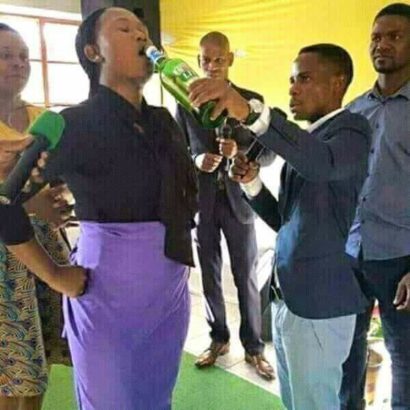 A new viral photo shared online shows a so-called pastor giving a member of his church beer to drink before he starts the deliverance service.