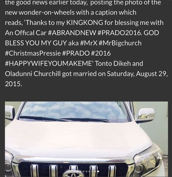 Recall Tonto Dikeh had earlier called out her ex-husband, Olakunle Churchill for squatting in her house after their marriage because he did not have a place of his own.