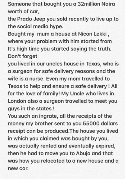 “Stop using my brother to make money and be relevant go back to Nollywood acting, stop using real life for films !