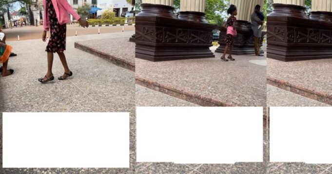According to the lady, the little girl refused to sit in one place even after she was chased out of church. She was captured wandering around freely along the church corridor.