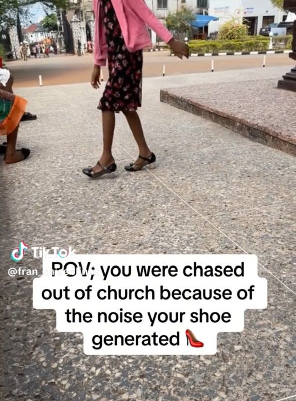 The viral clip shows the little girl walking out of the church auditorium with her mini heels that was generating noise.