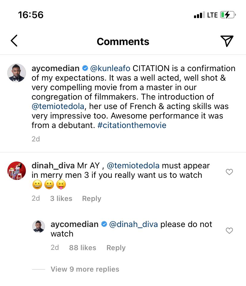 “Mr AY, @temiotedola must appear in Merry Men 3 if you really want us to watch.”