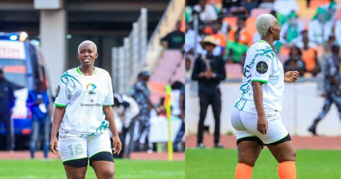 The comedian was captured wearing a football jersey on the field at the Attom Foundation Charity match in Abuja.