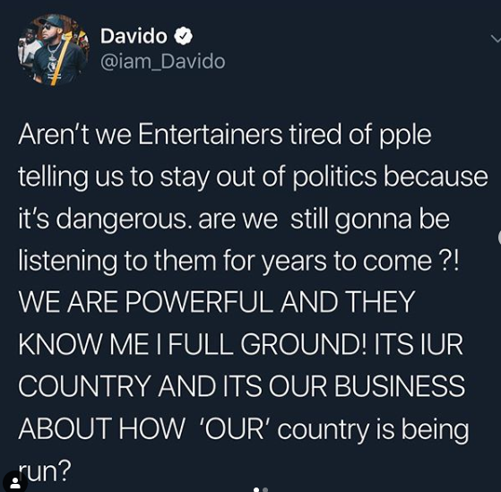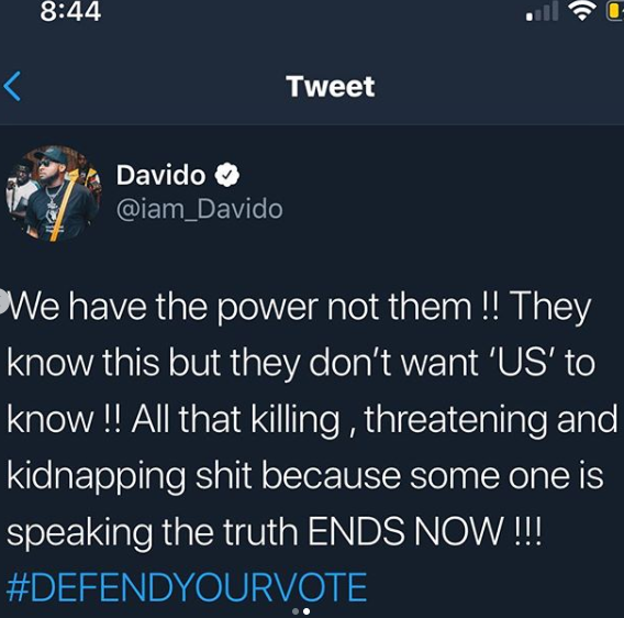 Davido has again shown that he’s certainly not in support of the re-election of President Muhammadu buhari.