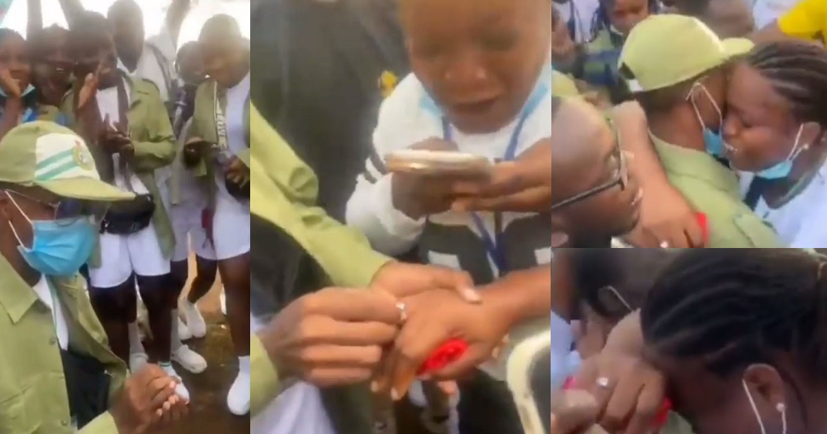 A video that found its way to the internet shows the moment the Corps member went on his knees and asked his sweetheart to be his wife, amid cheers from his fellow Corps members.