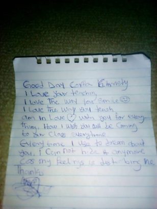 A female corps member identified as Christy Augustine, has shared a love letter she from a male student at the school she was deployed to.