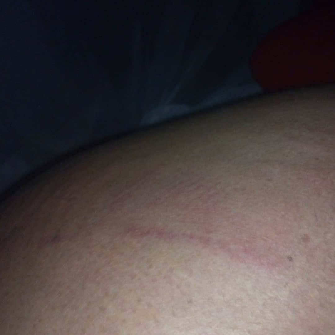 “I also heard crazy stories from his various house girls that u won’t believe, you will just wonder why!!?… His wife is a drop dead gorgeous lady. Her hips will make most woman go green with envy. I remember the night he pushed her down the stairs. Well…. Tonight another episode..he was beating her on the streets. The child was begging him to stop and he hit the little girl with his belt..I stupidly went to intervene and he used belt to wipe me so hard..see the picture broken finger, torn leg, elbow, boobs sef not spared.”