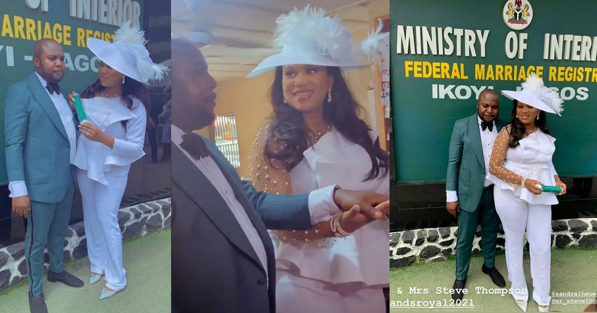 The court wedding of Nigerian businesswoman, Sandra Iheuwa, to her beau, Steve Thompson, was held at the Federal Marriage Registry, Ikoyi, Lagos state earlier today, August 12th, 2021.