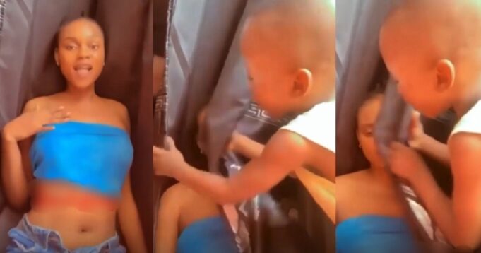 Nigerians on social media have reacted to a viral video showing a little kid correcting his sister, who was barely clad to cover up.