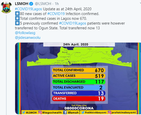 The development was disclosed on the Twitter handle of the Lagos State Ministry of Health.