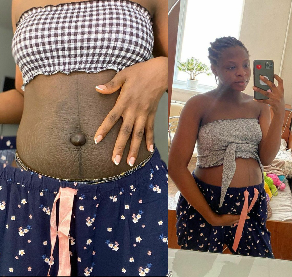 “Don’t stress over post baby body, instead love yourself, your marks, the pigmentation and your baby because you are beautiful just the way you are.” She wrote.