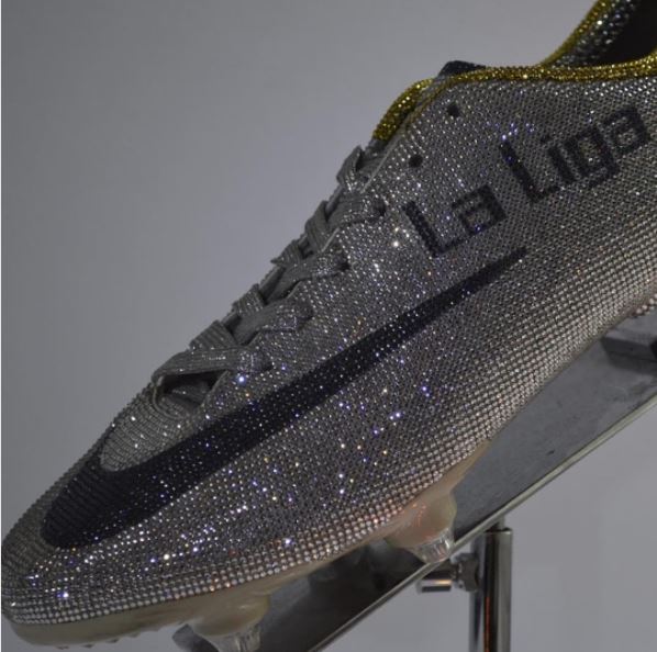The Football star, who just welcomed twins through a surrogate mother, has never been gifted a pair of crystal boots until now.