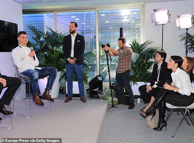 Cristiano, 34, opted for a suave display as he rocked a slick white shirt and distressed indigo jeans to promote his exciting new business venture.